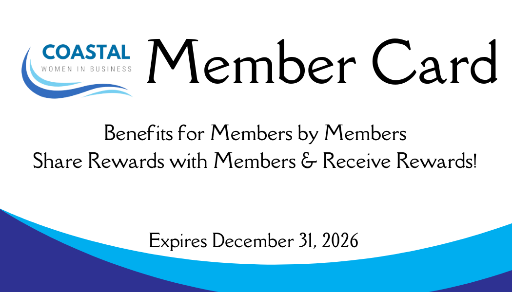 Member Benefits is for promoting, sharing, and encouraging other local business owners. This is the place where we can make a special offer for Coastal Women in Business members only, and in return we can shop local and support our local businesses and Coastal Women in Business members.